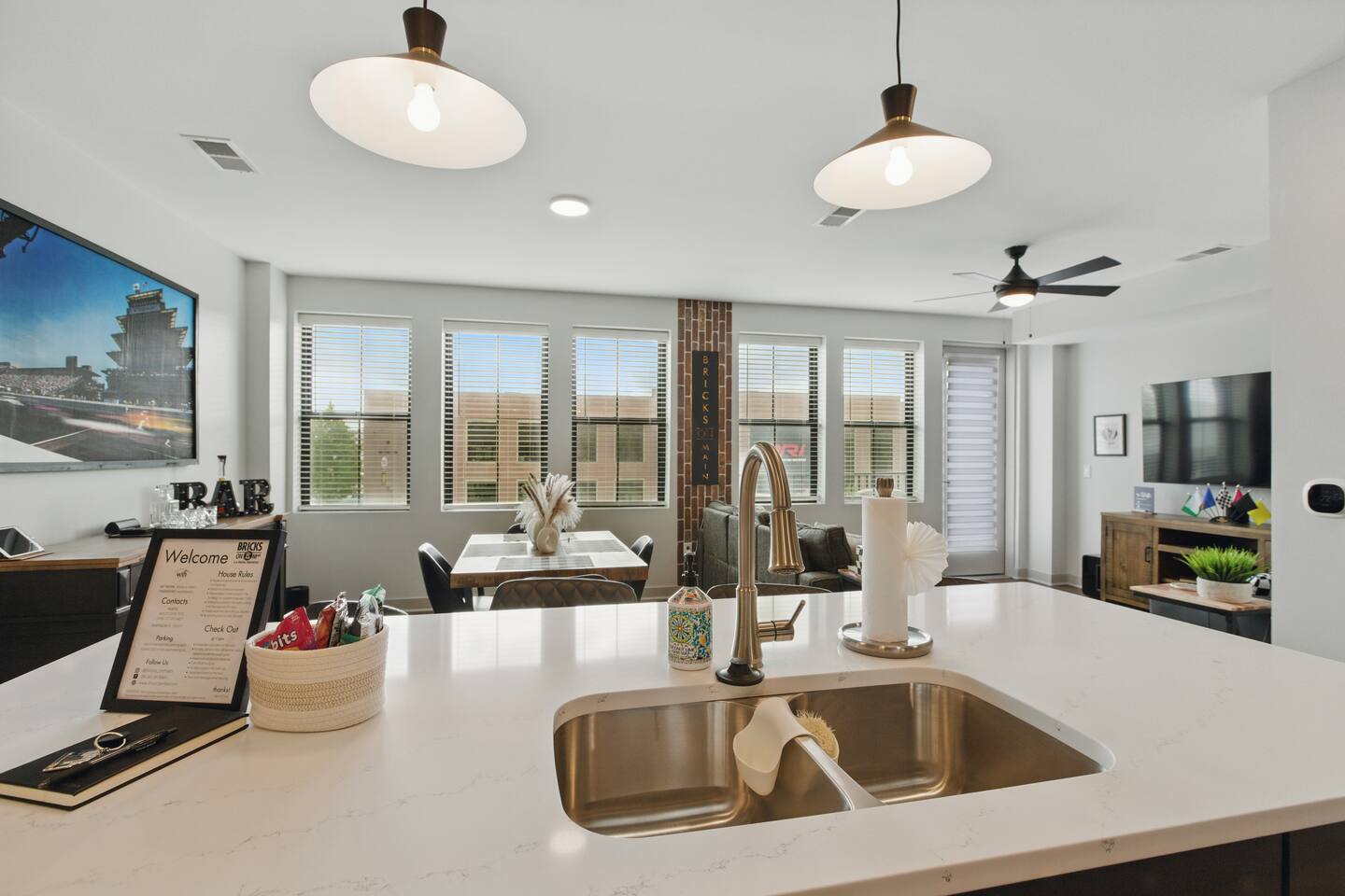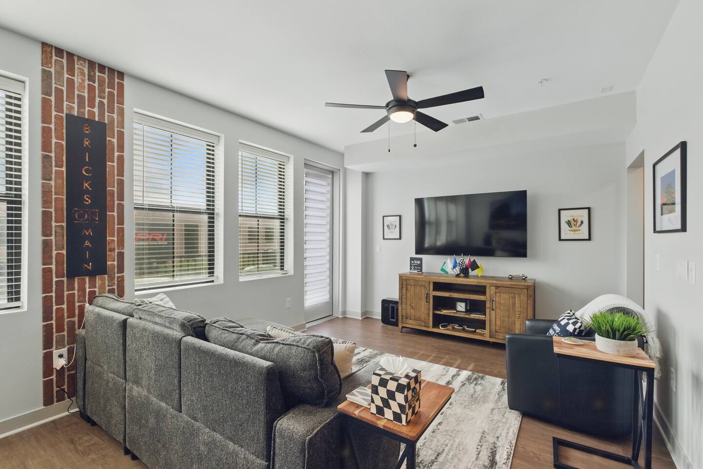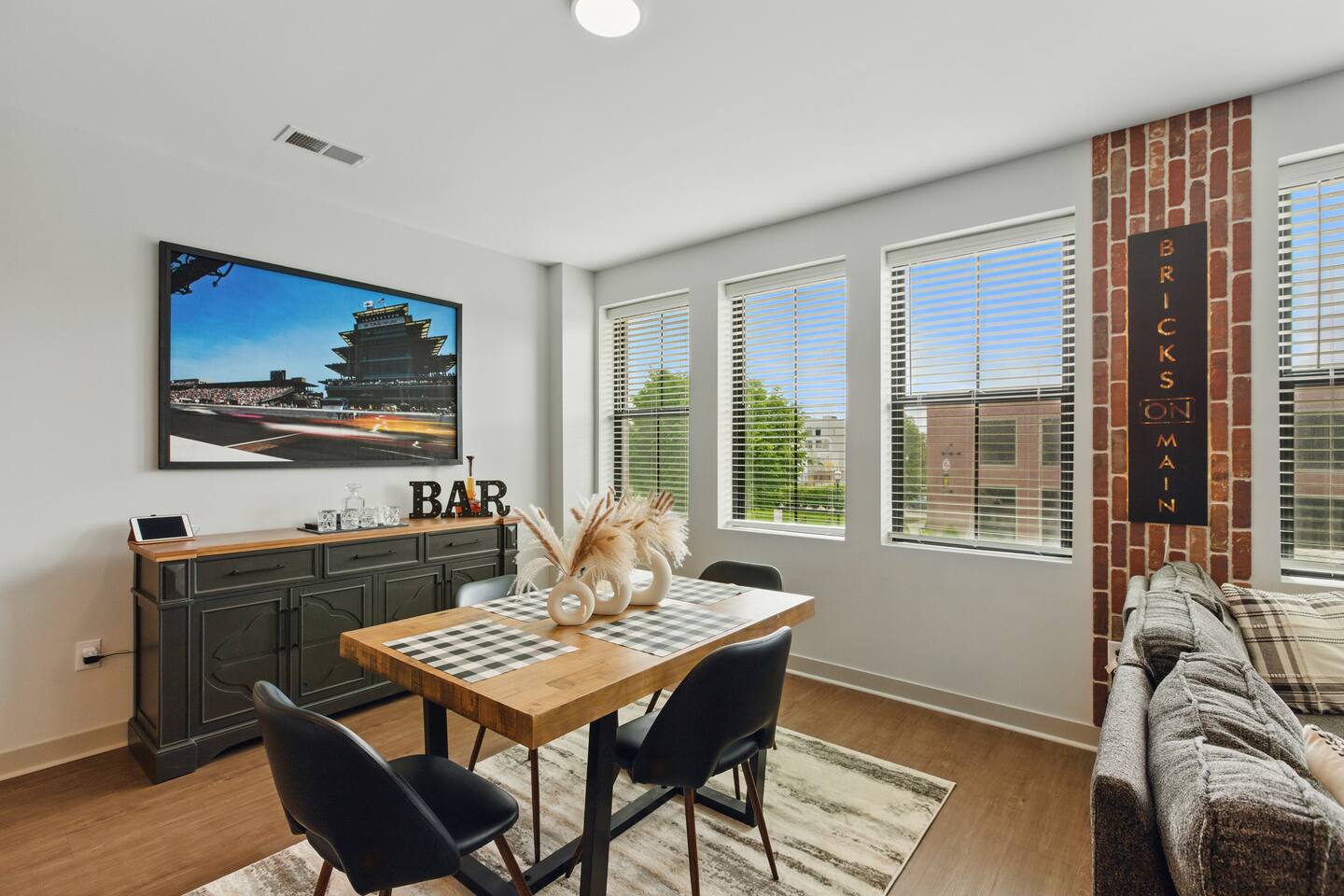 Bricks on Main | Speedway, IN Stay at our newly built, modern condo at 1300 Main in Speedway—just a 5-minute walk from the Indianapolis Motor Speedway and a 15-minute drive to downtown Indy. Perfect for up to 4 guests, this stylish space features a spacious bedroom, bathroom, open-concept living area, fully stocked kitchen, reserved parking spot, and a private outdoor patio. With its prime location and thoughtful amenities, your perfect Indy getaway awaits!