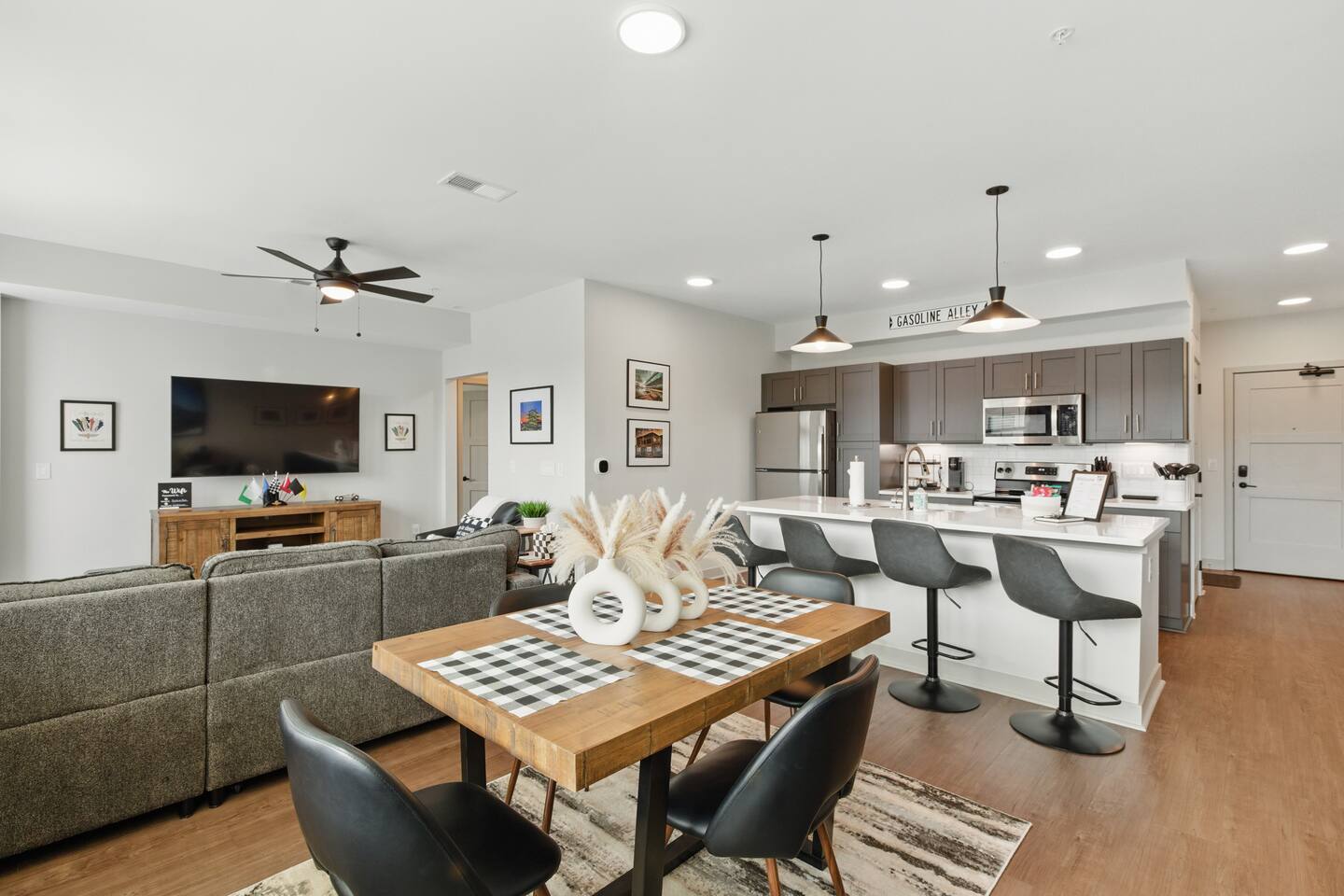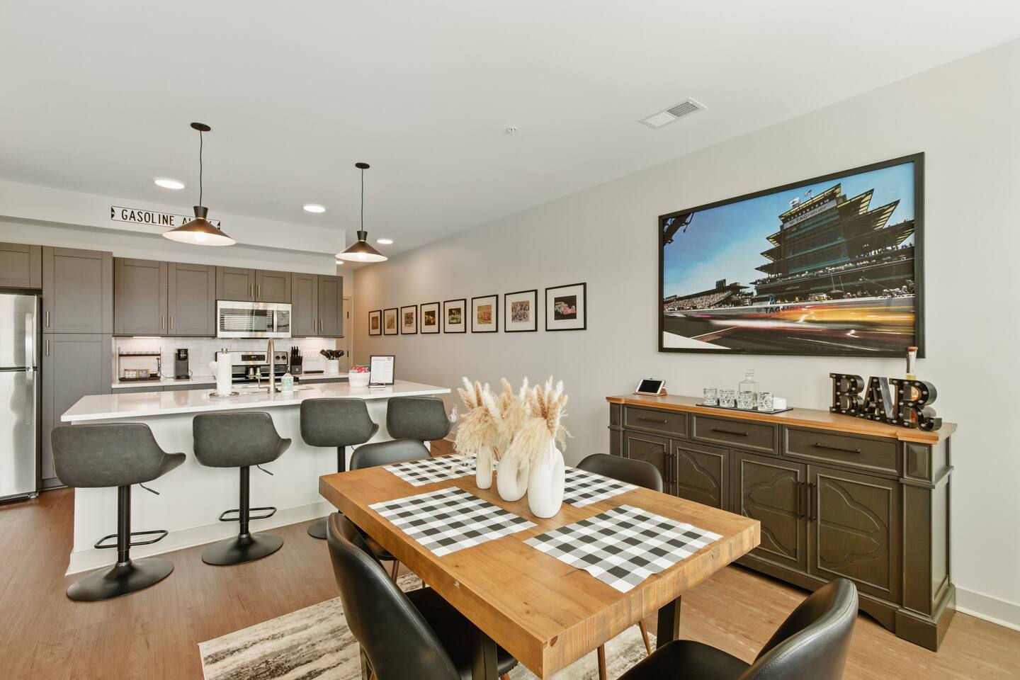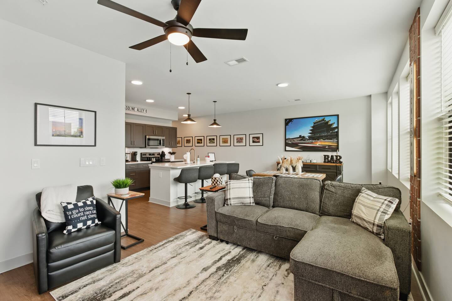 Bricks on Main | Speedway, IN Stay at our newly built, modern condo at 1300 Main in Speedway—just a 5-minute walk from the Indianapolis Motor Speedway and a 15-minute drive to downtown Indy. Perfect for up to 4 guests, this stylish space features a spacious bedroom, bathroom, open-concept living area, fully stocked kitchen, reserved parking spot, and a private outdoor patio. With its prime location and thoughtful amenities, your perfect Indy getaway awaits!